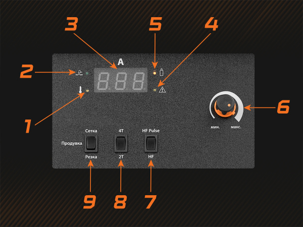 - Индикатор тока резки