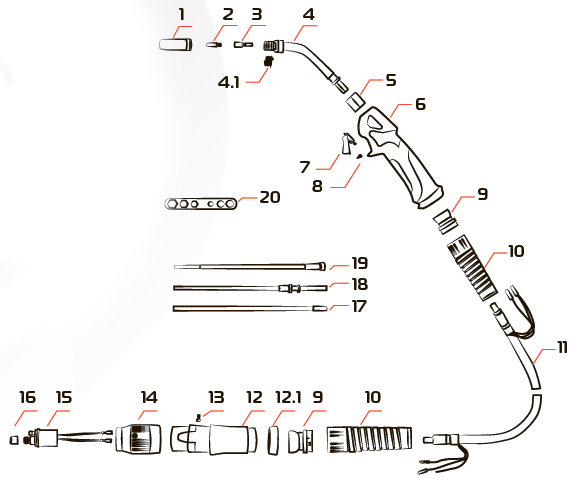 20. Ключ для сборки горелки MIG
