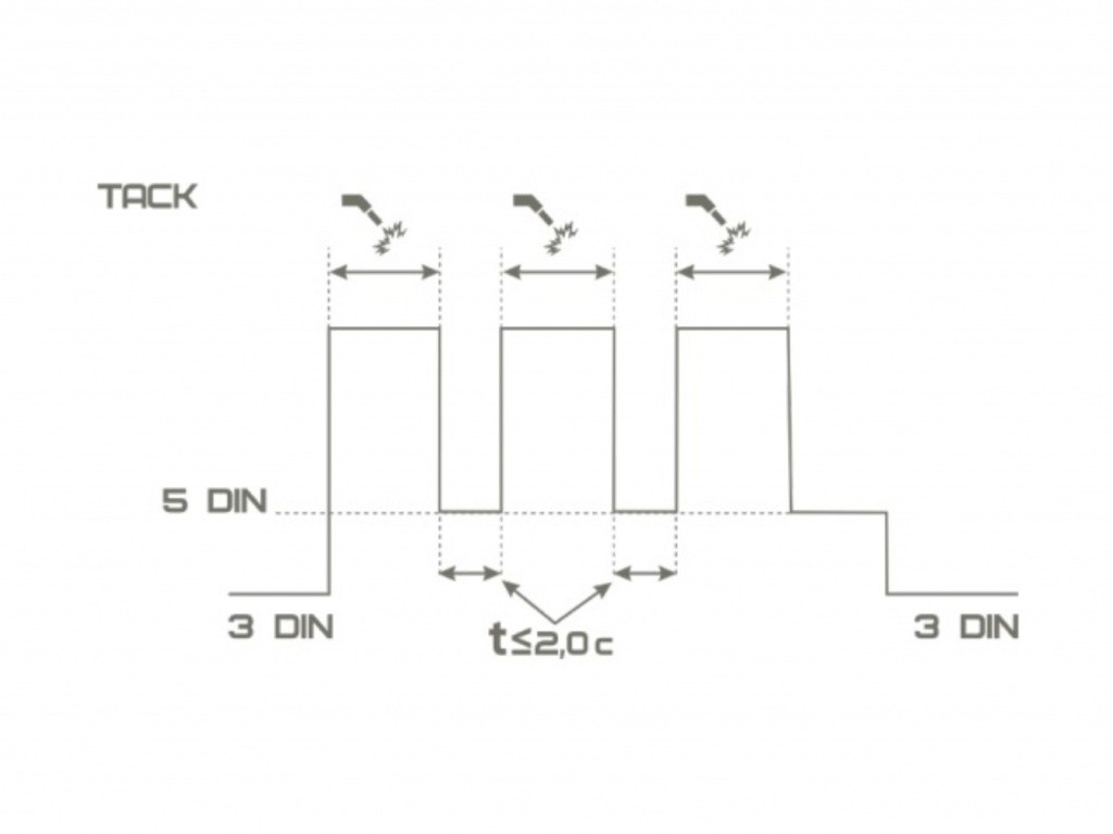 Снижайте нагрузку на глаза при точечной сварке Режим TACK оптимизируем работу светофильтра во время точечной сварки и прихваточных швов. После окончания горения сварочной дуги фильтр из установленного затемнения осветляется не в начальное затемнение 3 DIN, а на две секунды затемняется до 5 DIN. Это позволяет с одной стороны переместиться в следующее место сварки, а с другой снизить нагрузку на глаза за счет более плавного перепада между светлым и темным состоянием фильтра. Если в течение двух секунд не происходит зажигание дуги, фильтр из состояния 5 DIN переходит в начальное затемнение 3 DIN.