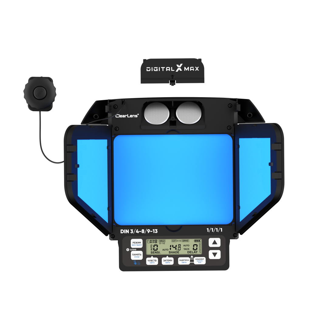 Инновационная маска START DIGITAL X MAX с максимальным набором опций, панорамным обзором и синергетическим управлением, позволяет лучше контролировать рабочий процесс. Модель оснащена режимом самодиагностики фильтра, функцией “Градиент”, режимами “Автопилот” для автоматического выбора степени затемнения, чувствительности сенсоров и времени задержки. Так же светофильтр оснащен функцией сохранения настроек.