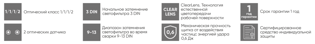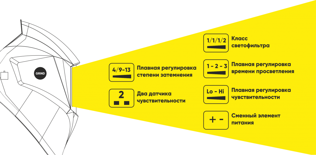 | Диапазон затемнения, DIN | 9-13 |