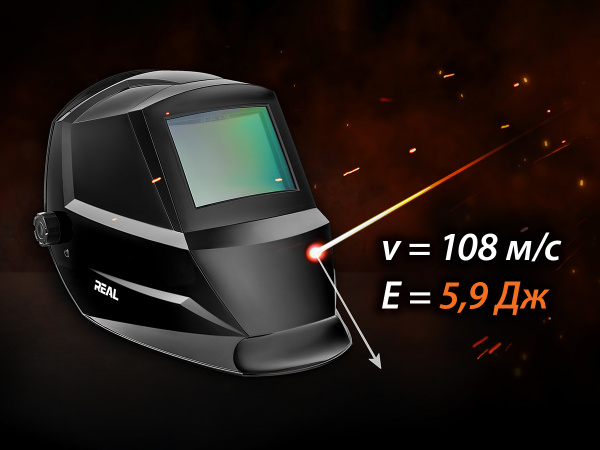 - Щитки REAL защищают сварщика от высокоскоростных частиц со среднеэнергетическим ударом;